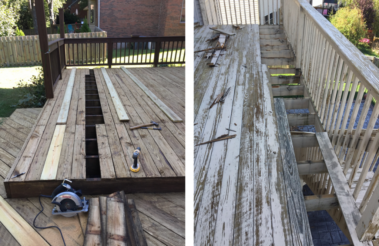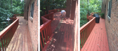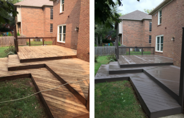- Prepares the surface for repainting or the staining of a deck, pergola, fence, or other wood structures.