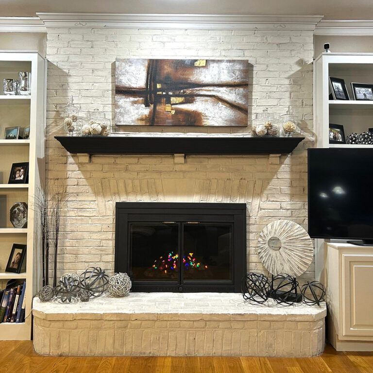Lime wash application to fireplace in Lexington KY home to brighten, modernize and improve the…