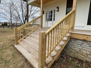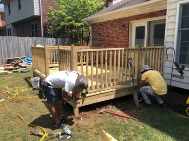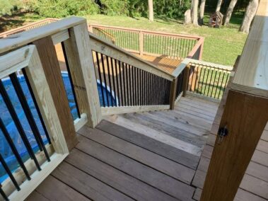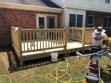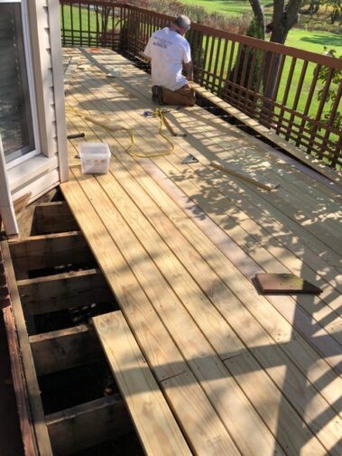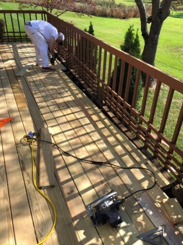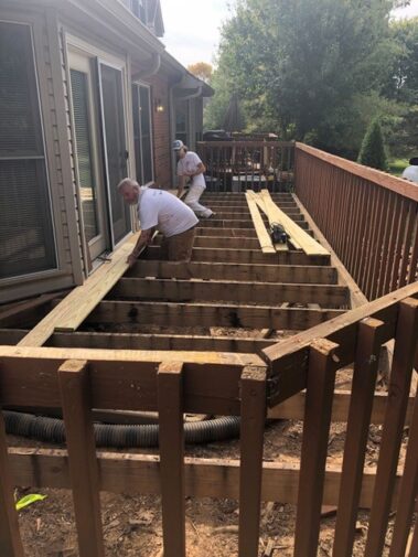 - replacing rotted deck boards, spindles, handrails, or steps,